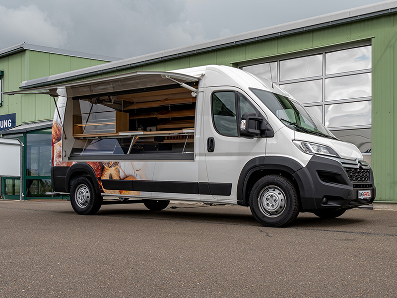Machen Sie Ihr Bäckermobil zu etwas Einzigartigem. Maßgefertigte Ladensysteme und überzeugende Stauraumlösungen sorgen für den nötigen Komfort und eine hochwertige Außendarstellung. Überzeugen Sie sich von unserem Fünf-Sterne-Marktmobil.