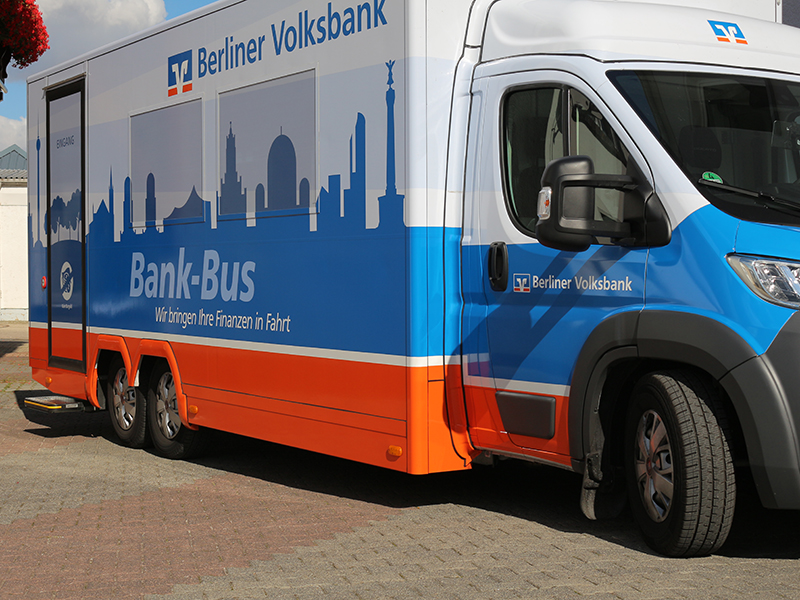 30 Quadratmeter Außenwerbefläche plus knapp sechs Meter Länge für nachhaltigen Kundenkontakt – so wird Ihr Werbefahrzeug zum Erfolgsmobil. Dem Interieur sind dabei keine Grenzen gesetzt, vom Fanshop namhafter Fußballvereine bis zur rollenden Bankfiliale hat RKBGamo bisher jede Idee in die Tat umgesetzt.